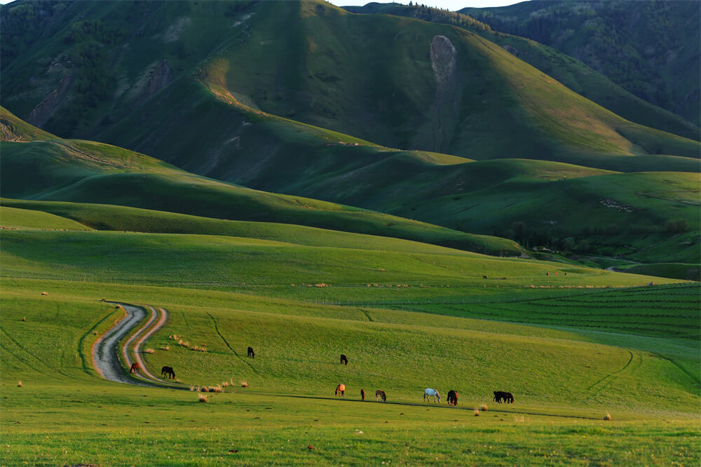 - Thảo nguyên Kalajun (bao gồm xe trung chuyển) – Nằm ở trung tâm thung lũng sông Ili, Tân Cương, đây là một trong những thảo nguyên núi cao được bảo tồn nguyên vẹn nhất ở sườn tây dãy Thiên Sơn. Thảo nguyên trải dài nhấp nhô với những đường nét mềm mại, cảnh sắc thay đổi rõ rệt theo bốn mùa: mùa xuân – hè cỏ xanh mướt, hoa dại nở rộ; xa xa là núi tuyết và biển mây hòa quyện vào nhau. Với tầm nhìn khoáng đạt và vẻ đẹp nguyên sơ, nơi đây được mệnh danh là “thảo nguyên trên không”, điểm đến tiêu biểu để cảm nhận vẻ hùng vĩ của thảo nguyên Ili.