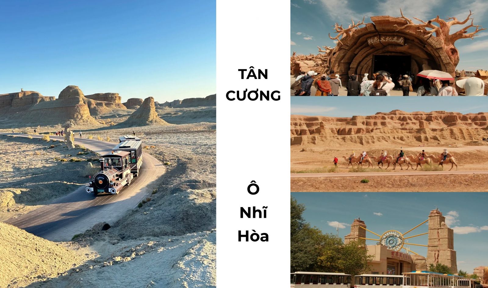 - Thành phố thần bí nhất Tân Cương - Thành Phố Ma Ô Nhĩ Hòa còn gọi là “Thành phố gió Urho” được hình thành hàng triệu năm nói mòn bởi gió và nước, tạo nên những khối đá kỳ dị, giống những tòa lâu đài hoặc sinh vật huyền bí kèm theo những âm thanh giống như gào thét khiến cho nơi đây được gọi là Thành phố Ma (bao gồm xe lửa nhỏ).