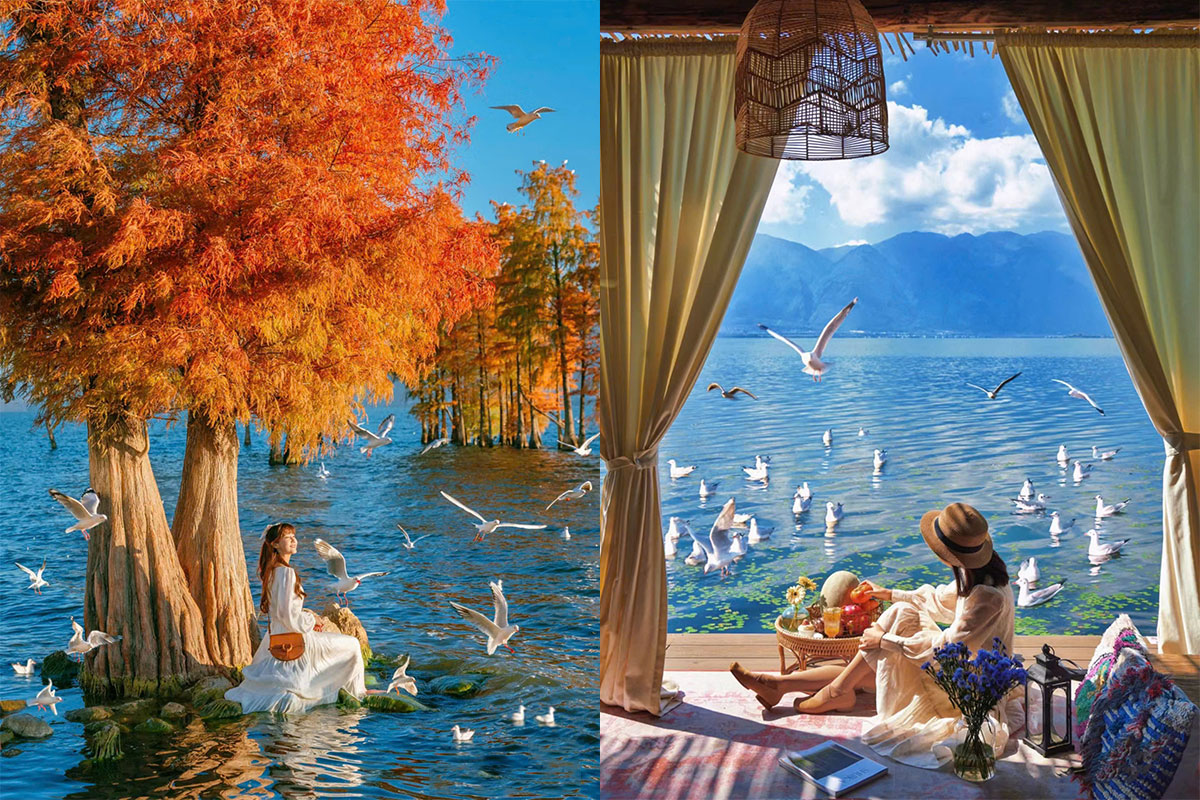 - Hồ Điền Trì còn gọi Côn Minh hồ, ngắm hải âu và trải nghiệm cho chim hải âu ăn (chi phí tự túc).