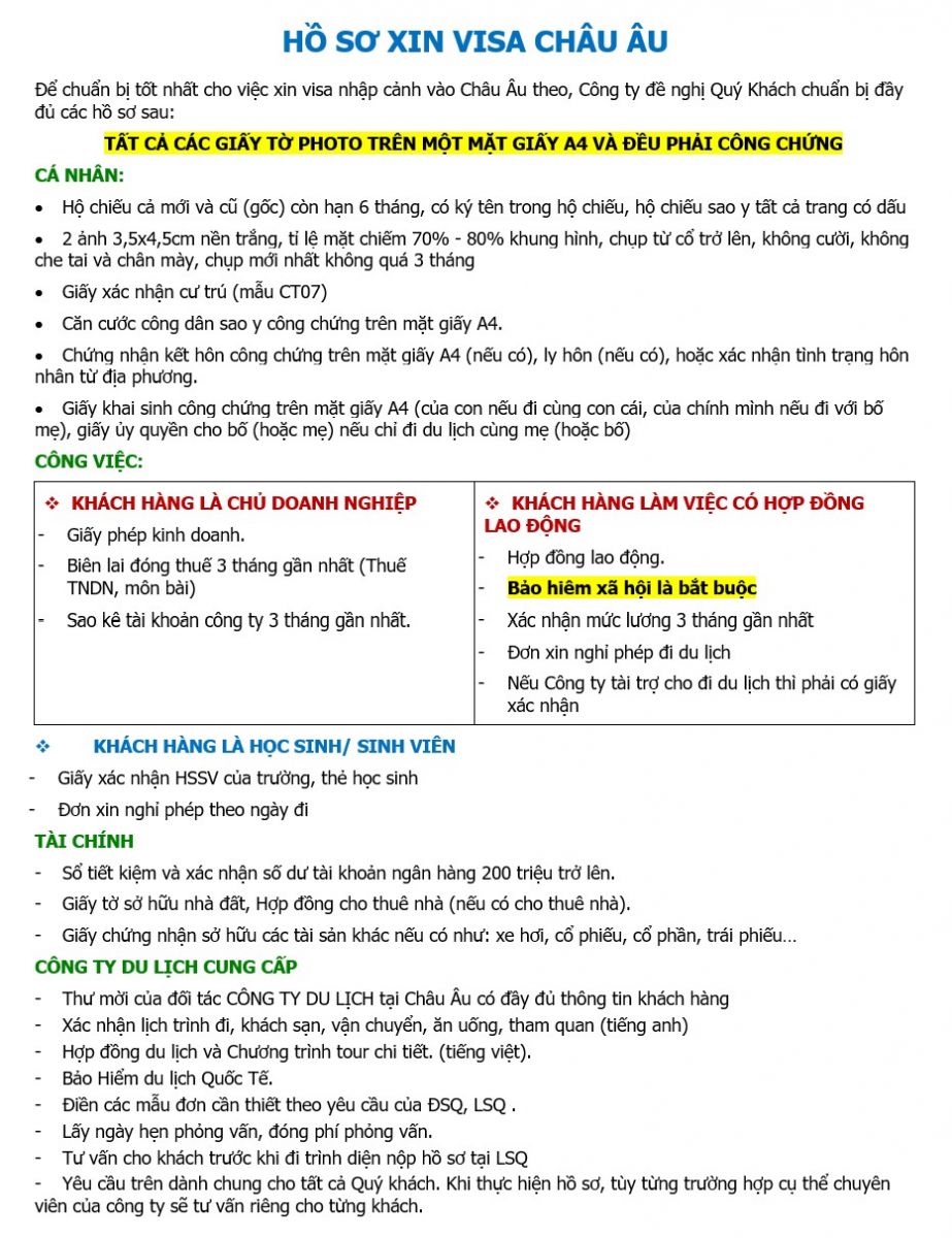 - Quý khách mang quốc tịch nước ngoài hoặc Việt Kiều phải có visa ETIAS đã khai mang theo lúc đi tour.