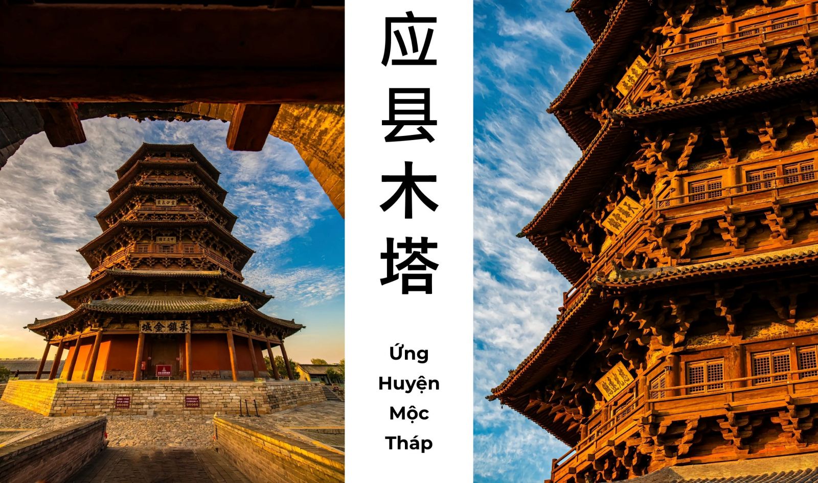 - Tháp Ứng Huyện – Được xây dựng hoàn toàn bằng gỗ, không hề có một thanh sắt hay đinh nào. Bất chấp vô số trận động đất và mưa nắng, tháp vẫn không hề lay chuyển. Với chiều cao 67,31 mét, đây là công trình kiến trúc bằng gỗ cao nhất và lâu đời nhất còn tồn tại của Trung Quốc. Ngôi tháp đứng vững hơn 1000 năm vượt qua biết bao thăng trầm của thời gian vẫn uy nghiêm như ngày nay.
