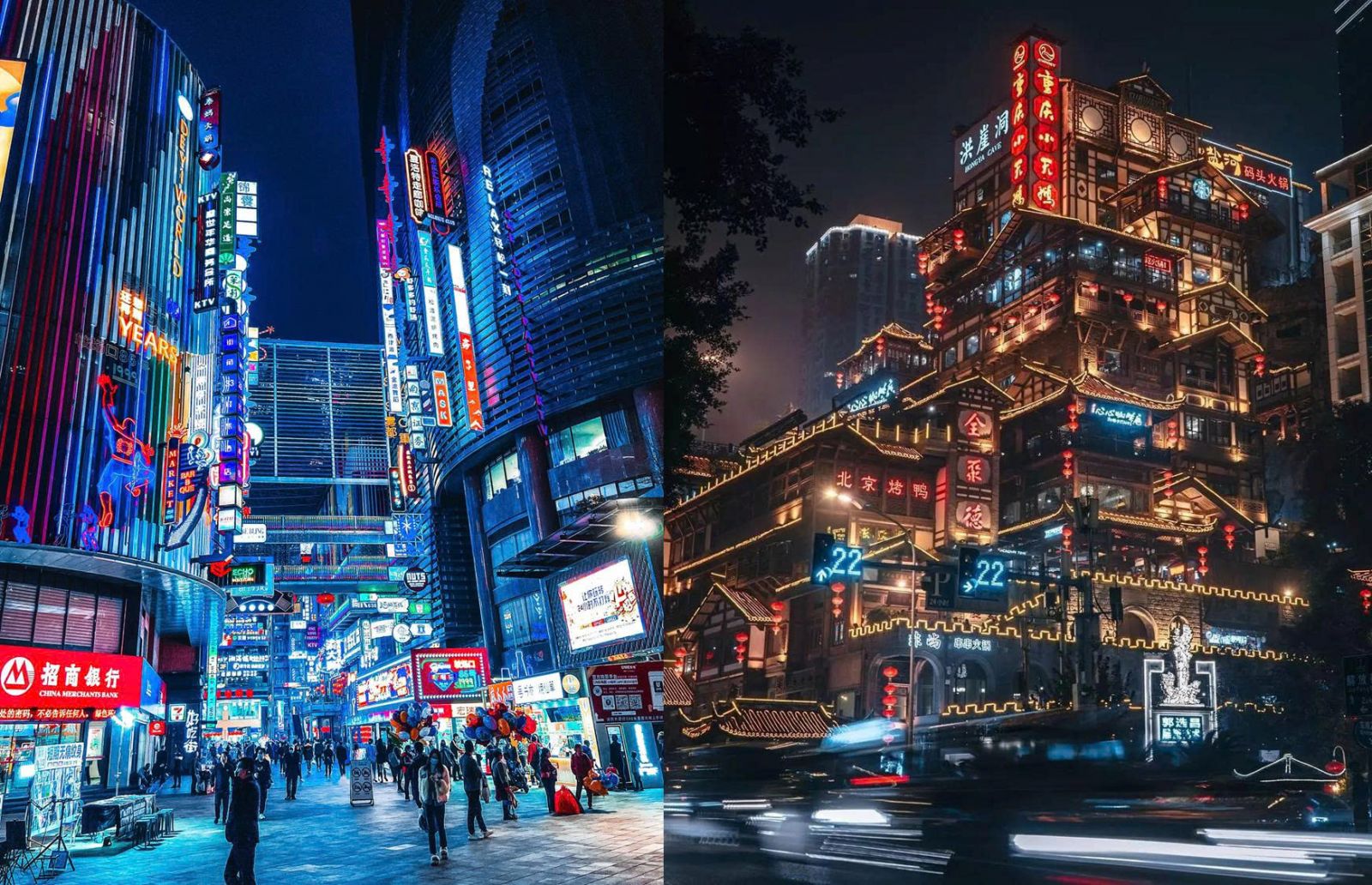 - Hồng Nhai Động – khu nhà sàn 11 tầng, cao 75 m, trên một vách đá dựng đứng tọa lạc dọc theo bờ sông Gia Lăng, đây là khu phức hợp với nhiều hàng quán thu hút khách du lịch và càng lộng lẫy hơn khi màn đêm buông xuống. Hồng Nhai Động luôn biết cách níu chân du khách thập phương, là điểm check-in cực hot khi đến Trùng Khánh.